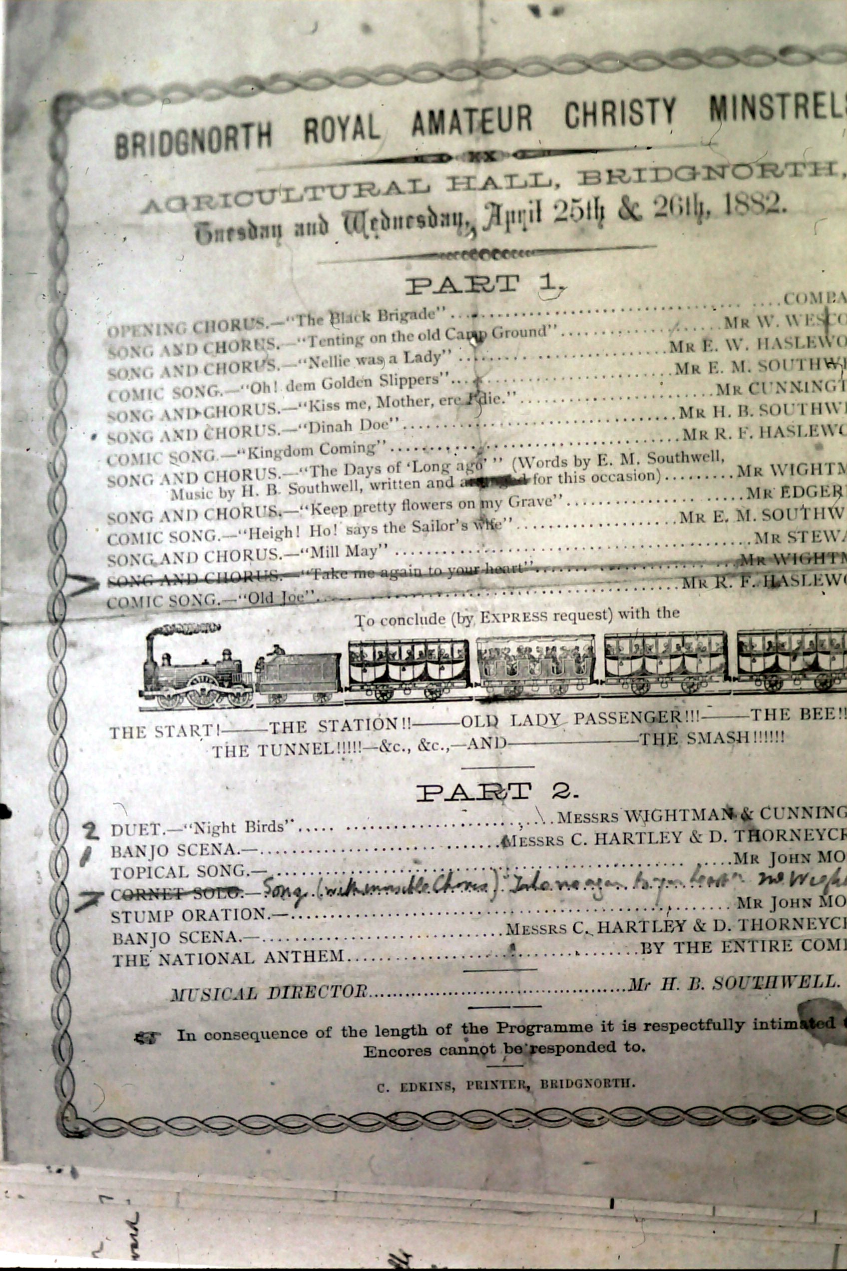 35 m slide - High Street, Bridgnorth, The Shops - Programme - April 25th and 26th, 1882. Bridgnorth Royal Amateur Christy Minstrals - performances in Agricultural Hall. April 25/26. 1882.