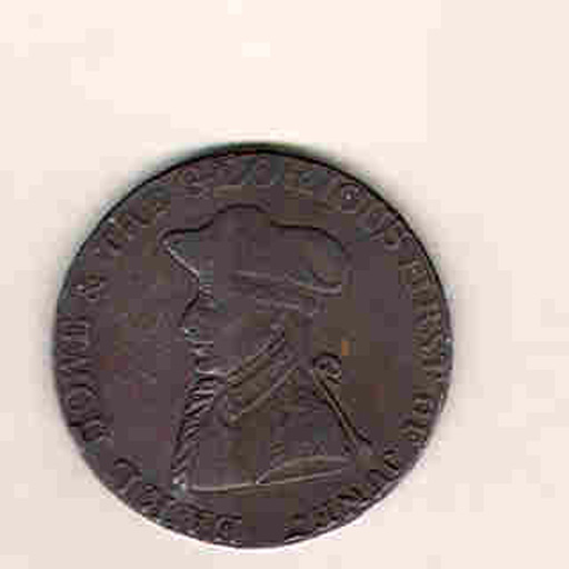 Coin. 'C' General Earl Howe type 1/2d - 1794 On the rim 'Payable at Hull and London.'.